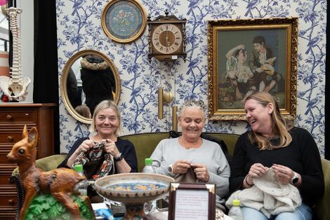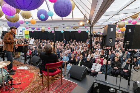 Margt fólk naut þess að sitja í huggulegum stofum sem Jazzþorpsteymið setti upp.