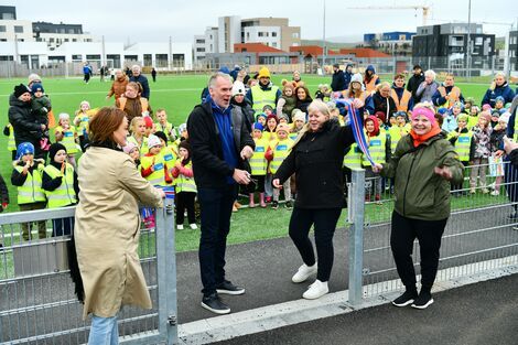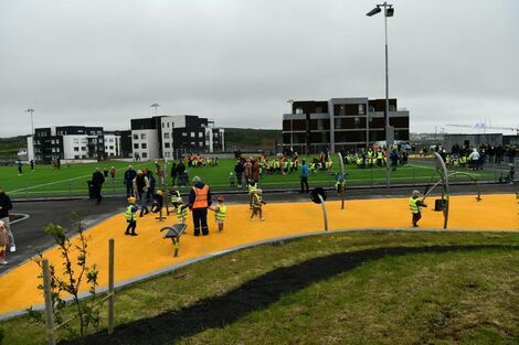 Við opnunina í gær kom fjöldi barna úr hverfinu og mætti Ísbíllinn á staðinn. Þá bauð Stjarnan upp á knattþrautir og skemmtun.