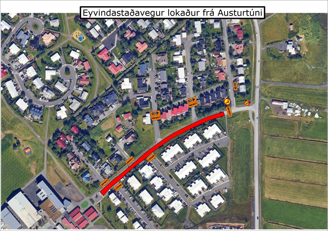 Götukaflinn verður lokaður fyrir alla umferð á meðan framkvæmdum stendur en hjáleiðir verða merktar eins og sýnt er á meðfylgjandi lokunarplani.