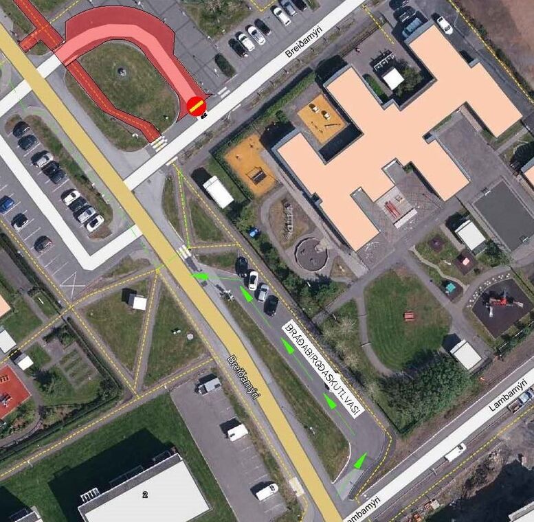 Á sama tíma lokast gönguleið yfir Breiðumýri norðan við bílastæði við Holtakot. Bent er á gangbraut sunnan við bílastlæðið við Holtakot.
